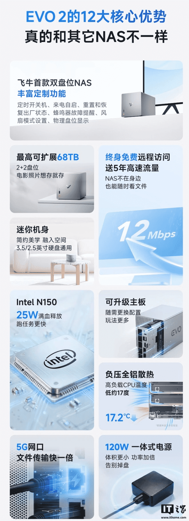 飞牛首款自有 NAS EVO 2 开启预售:1999 元起,双盘位设计、英特尔 N150 CPU